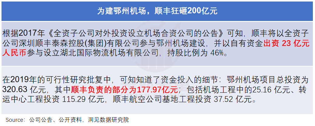 但收益的另一面,往往写着风险。更何况,鄂州机场可是烧钱200亿的“豪赌”——机场启动建设的2017年,顺丰净利润不过47亿,相当于把4年的利润全部砸进去。