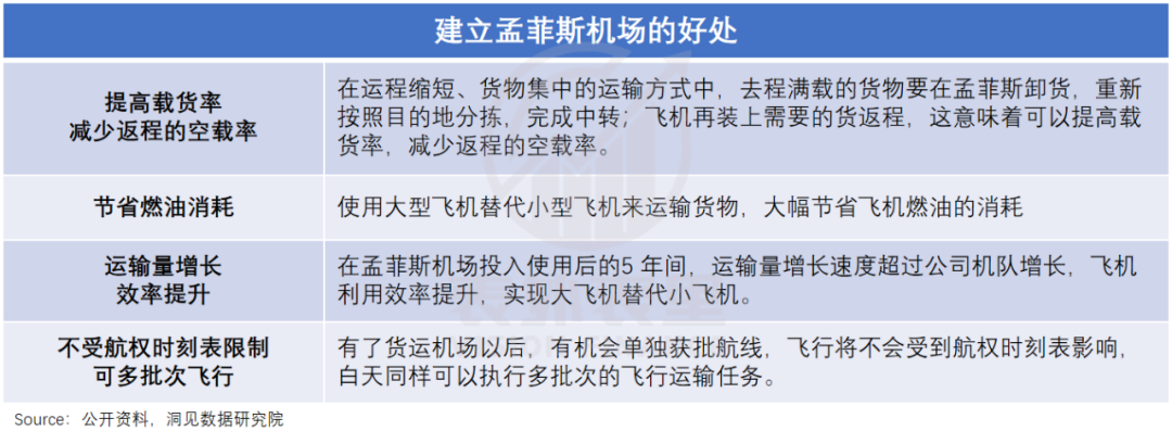 不仅如此,孟菲斯机场落地,还可以提高载货率、用大飞机节约油耗以及实现全时段执飞,可谓一举多得。