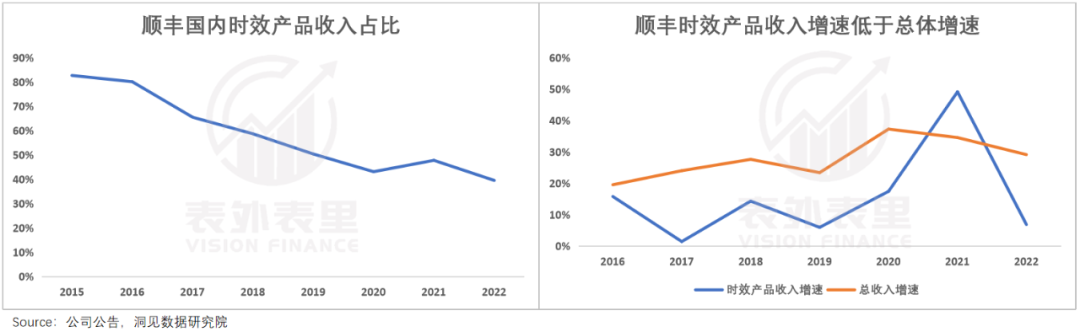 过去在中国快递行业,顺丰的速度是独一份儿,时效业务对其收入贡献一度超过80%。然而2016年后,时效产品的收入增速开始使不上劲儿,低于整体收入的增速。