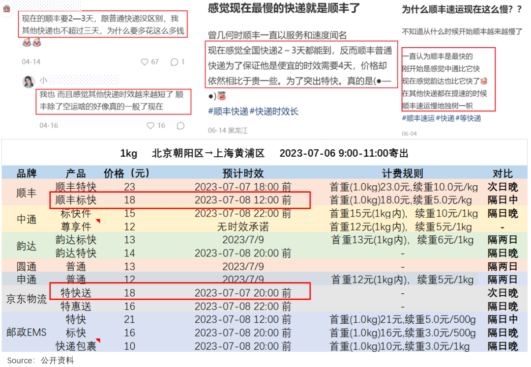 更何况,在行业内卷严重,各家都争分夺秒的情况下,顺丰“快”的品牌调性正在被消解。