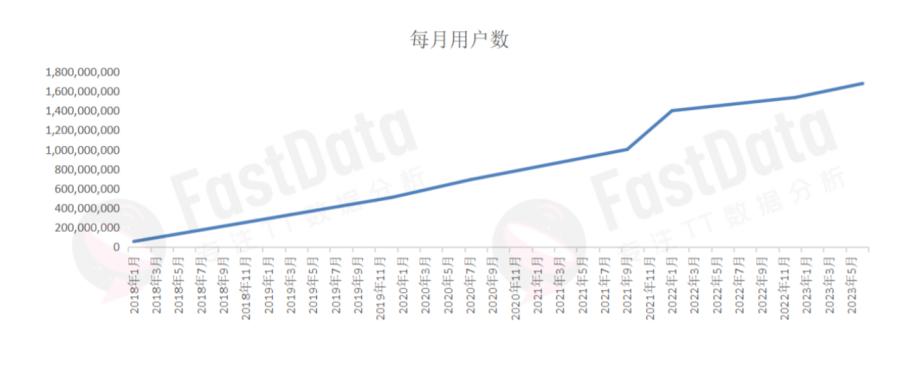 据悉,Tik Tok应用内购的下降或许与活跃用户增速下滑有关。Fastdata的数据显示,2022年1月,Tik Tok的用户数量增长率为39.8%,但在2022年12月,Tik Tok的用户增长率就降至9.73%,到2023年6月,用户增长率又降至8.92%。