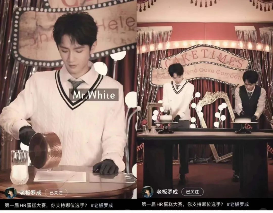 罗成的IP影响力还进一步促成了品牌与好利来的合作。四月份,罗成为美妆护肤品牌赫莲娜打造了一条“第一届HR蛋糕大赛”的视频创意内容。视频以蛋糕制作比赛的形式为叙事起点,用黑白配色的蛋糕颜色象征着赫莲娜黑绷带、白绷带的面霜产品。两只蛋糕的比拼不相上下,最后引出了两支面霜产品相互交融、配合使用的主题。内容制作的精良与颇具创意的表现形式,令网友大为称赞,打造了一次成功的跨界营销事件。