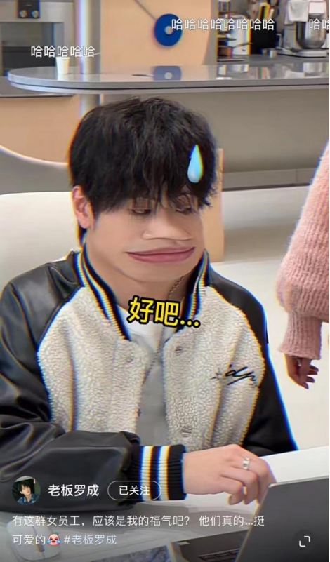 事实上,罗成在社交平台上是一个“社恐富二代”的形象。在一个简单的办公场景中,数十名员工成为罗成打造人设不可或缺的“背景板”。误以为女员工暗恋自己、与社恐司机尬聊、跟客户的局促社交场......在一幕幕堪称“社死”的名场面中,罗成以搞笑的视频表现方式与自成一派的稚嫩演技,在网友心目中留下了“地主家傻儿子”的形象。