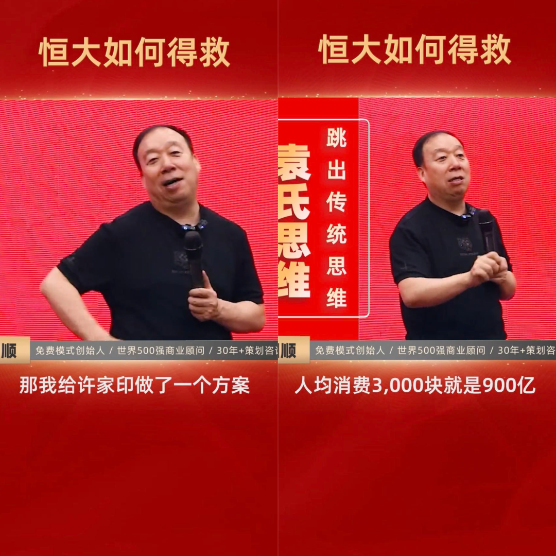 比如号称是“免费模式创始人”、“世界五百强商业顾问”、“30年+策划咨询经验”的袁国顺,曾多次在给自己的学员上课时宣称,许家印一直在约他,希望他能给恒大出一个方案。