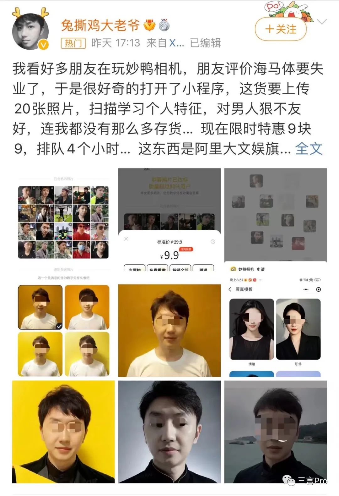 最基础是它有较为魔性的产品名字“妙鸭相机”(妙啊),产品效果很好,可玩性很强,而且男女老幼皆可玩,具备了成为爆款的最基础条件。