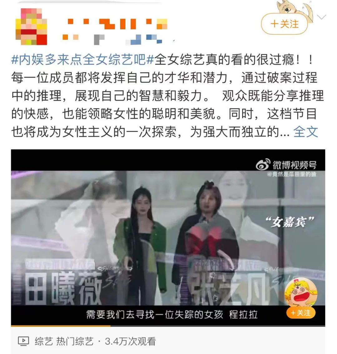 即使有一些知名的女性综艺制作人,导演这类手握话语权的幕后掌舵手,仍然以男性为主,他们对女性的情谊并不足够了解,会顺势而为地迎合大众的想象。况且综艺的受众本就以女性为主,采用当下受欢迎的男性嘉宾,似乎也更符合“观众的胃口”。