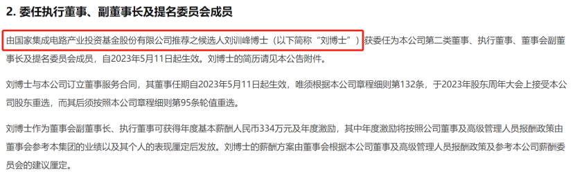 更多人关注的是,中芯国际在今年5月的委任公告中称,刘训峰是由国家集成电路产业投资基金股份有限公司(“芯片大基金”)推荐的。