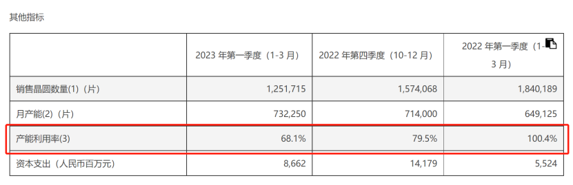 同时,中芯国际一季度产能利用率降至68.1%;与之相较,2022年第四季度产能利用率为79.5%,去年一季度超过100%。