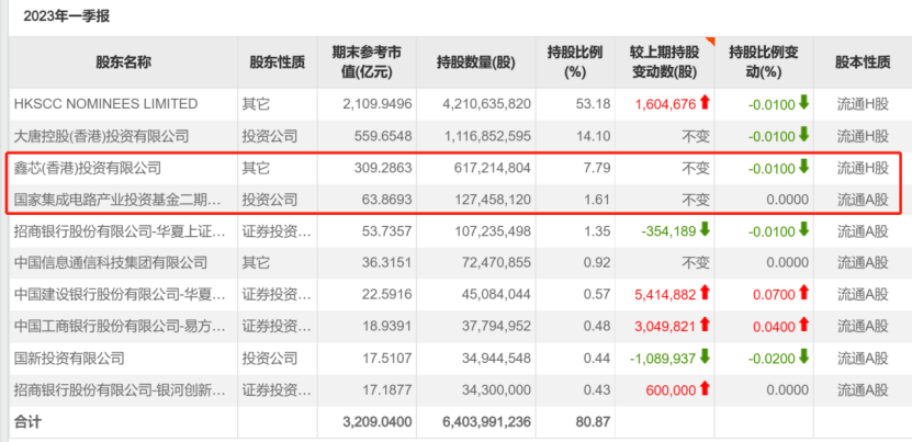 另一方面,中芯国际今年一季报显示,十大股东中,鑫芯香港持股比例为7.79%,是公司第三大股东;鑫芯香港是巽鑫(上海)投资有限公司的全资子公司,后者由芯片大基金一期全资拥有。