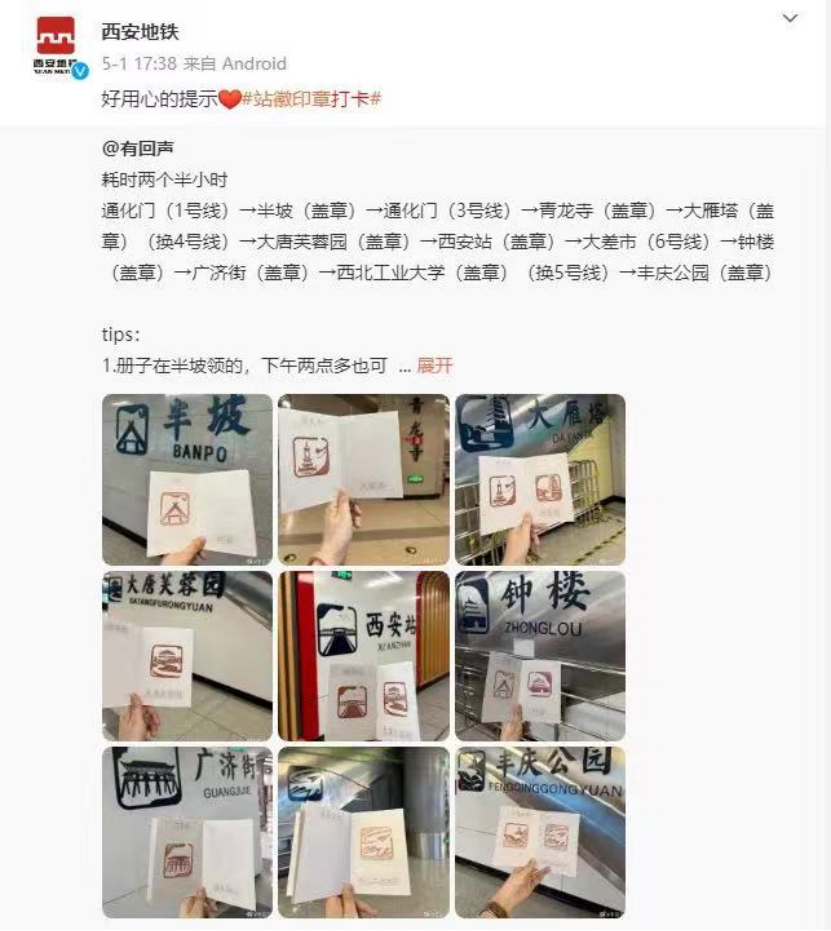 站台打卡盖章 图源:西安地铁