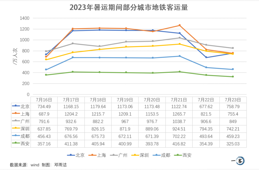 受通勤客流、暑运出游客流叠“buff”(指多重增益效果)影响,多城市地铁公交系统也开启暑运模式。广州地铁7 月工作日日均客运量约980万人次,其中 4个工作日的客运量超1000万人次。