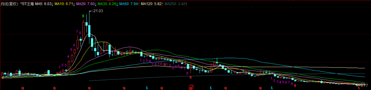 ▲*ST泛海月线图,来源:同花顺