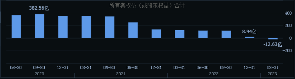 ▲*ST泛海的净资产走势,来源:同花顺