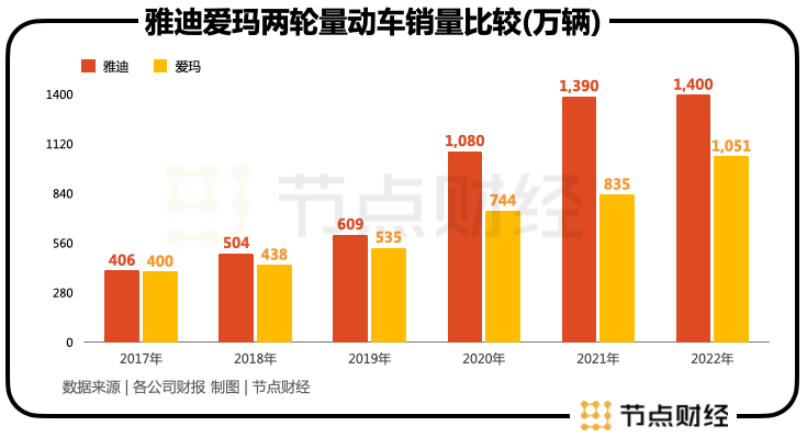 而自2017年至今,雅迪再也没给爱玛任何反超的机会。