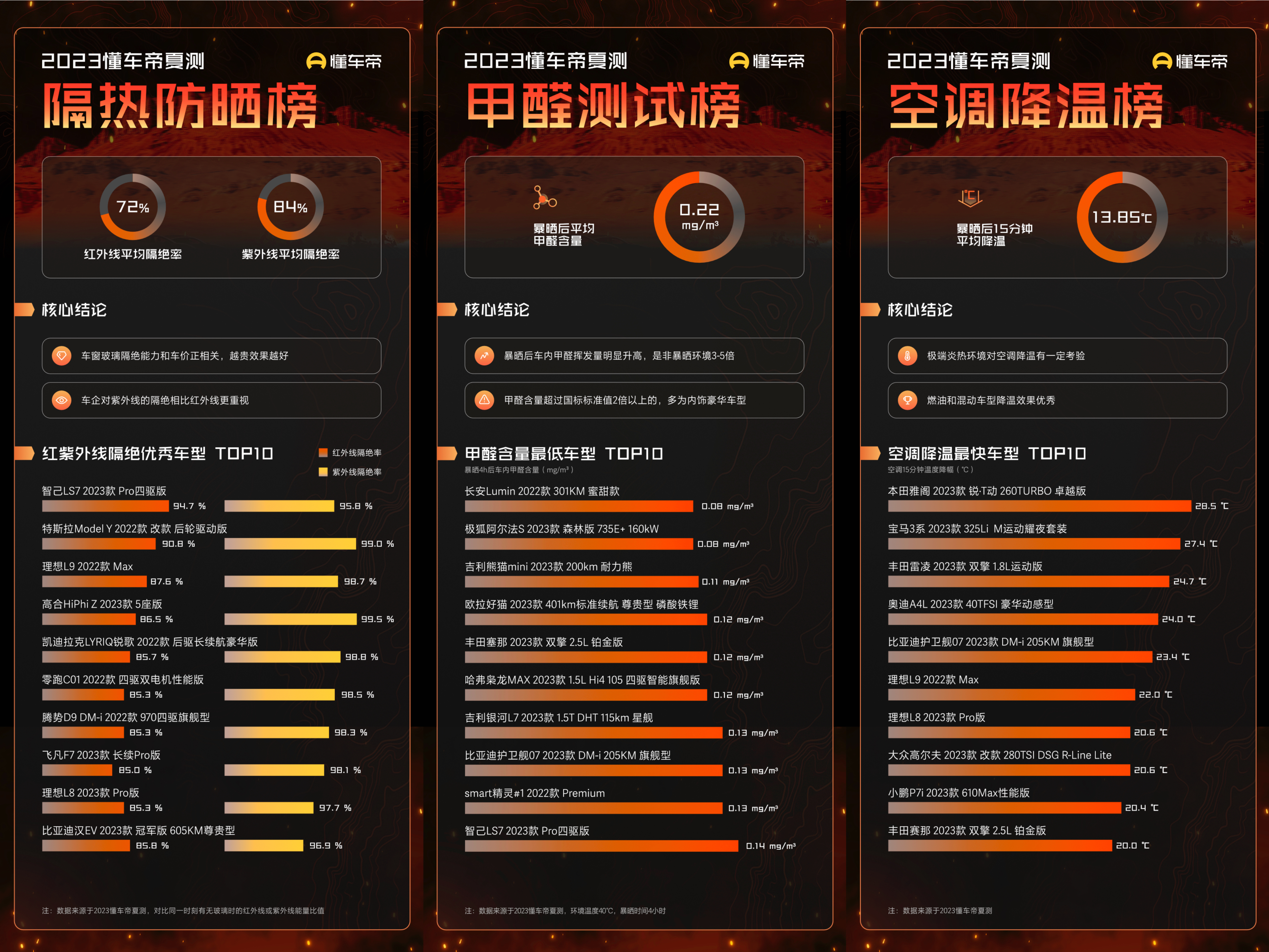 此次懂车帝的夏季测试结果显示,夏季高温对用车产生一定影响,尤其车内甲醛、防晒隔热、空调降温等方面,与日常用车存在较大差异。