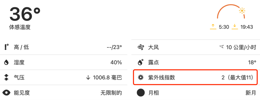 很多人做防晒的习惯是看当天的天气,例如是不是阴天,或者看天还亮不亮。但实际更准确的是看当天的「紫外线指数 UVI」。