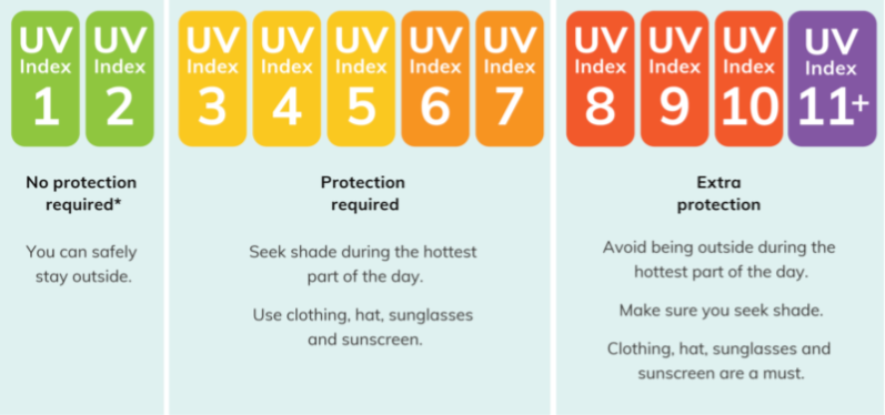 夏季10 am-4 pm 紫外线最强,通常会超过 8,建议此时必须采取防晒措施 / How to Prevent Melanoma. (2023). Melanoma Institute Australia.