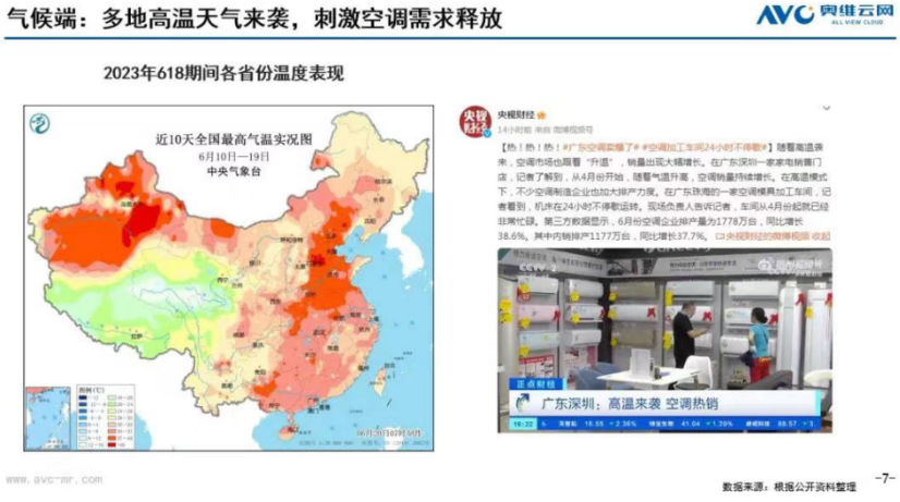 AVC:2022年上半年空调销量可以用“一骑绝尘”形容,零售涨幅接近20%,龙头企业出货量也是两位数高增长,部分腰部品牌甚至做到了30%以上增长,空调市场上半年的良好表现拉起了整个家电大盘。相较于去年,空调行业是比较超预期的状况。同时,很多券商研报对主流空调企业财报进行过预测,都持乐观态度,目前进入7月,由于去年的高基数和前期高增长,企业增长和零售都有一些压力,但长期来看,我们对空调市场依然保持乐观预测。