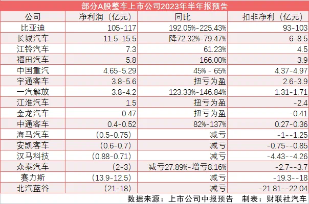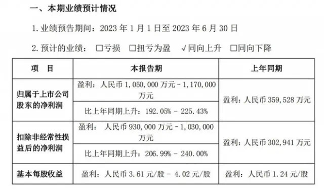 去年比亚迪有近百亿利润来自于补贴饱受诟病,但整体没有补贴2023年上半年,比亚迪也预计实现归母净利润105-117亿元,同比增长192%-225%;扣非归母净利润93-103亿元,同比增长207%-240%。单二季度,比亚迪实现归母净利润64-76亿元,同比增长129%-171%,环比增长54%-83%;扣非归母净利润57-67亿元,同比增长128%-168%,环比增长61%-89%。