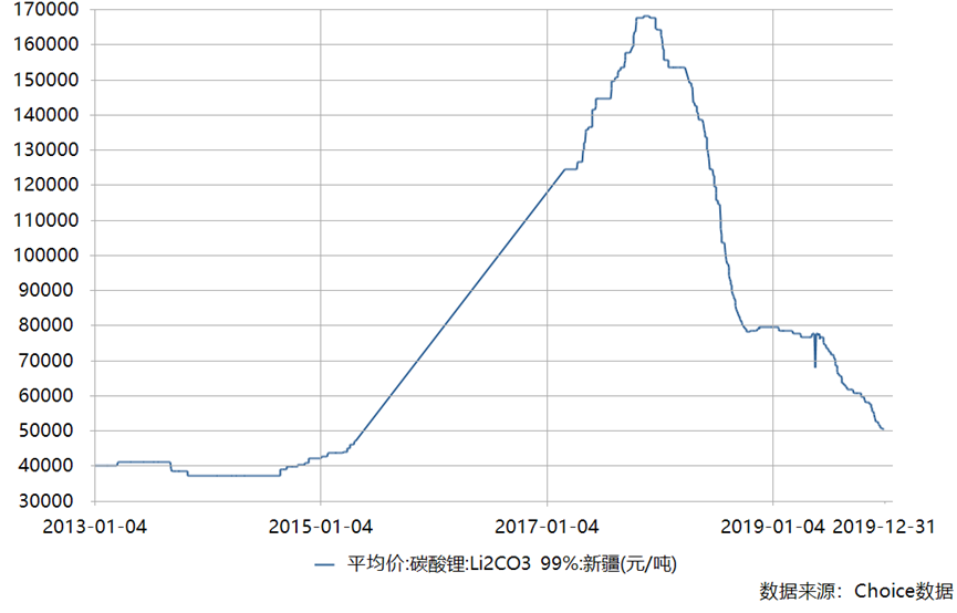 2018年底,锂价跌回到8万元/吨左右的水平,相比2017年高位,回落幅度超过50%;到了2019年下半年,锂价更是进一步跌至5万元/吨,比不少项目的成本价还要低。