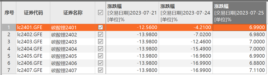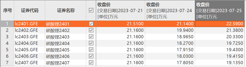 7月24日,国内碳酸锂期货上市第二个交易日,价格表现延续前一交易日跌势,部分远月期货合约继续跌停。