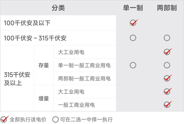 5月15日,国家发改委印发《关于第三监管周期省级电网输配电价及有关事项的通知》(以下简称《通知》),该通知已于2023年6月1日正式执行。根据《通知》,执行工商业(或大工业、一般工商业)用电价格的用户,用电容量在100千伏安及以下的,执行单一制电价;100千伏安至315千伏安间的,可选择执行单一制或两部制电价;315千伏安及以上的,执行两部制电价,现执行单一制电价的用户可选择执行单一制电价或两部制电价。