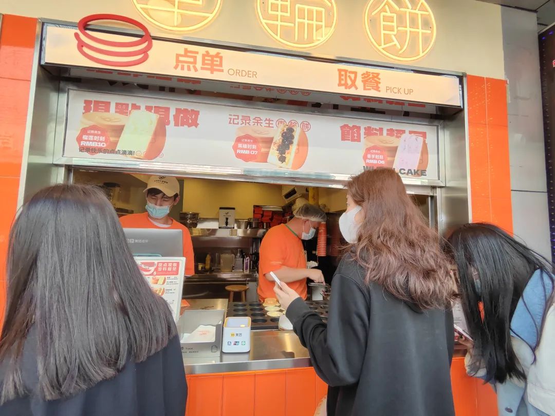 “记录余生车轮饼”的门店就在这条街道上,红餐加盟优选前往打卡时,大概是中午2点左右,当时门店内还有7-8名顾客在排队等候取餐。