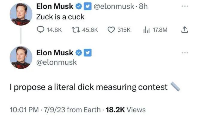 |世界首富近期做派的抽样:“扎克伯格是个龟男,我建议咱俩比比谁鸟大。”