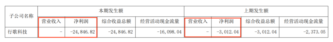 新浪科技查询寒武纪年报显示,行歌科技2021年没有营收,净亏损0.3亿元;2022年同样没有营收,净亏损扩大至2.48亿元。