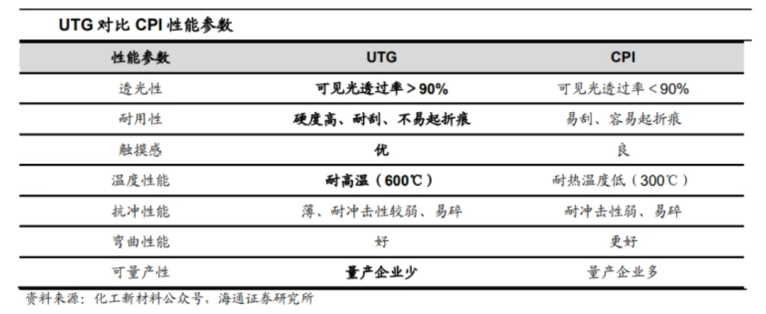 在UTG这边,2020年,三星在Galaxy Z Flip中引入UTG盖板,随后便坚持UTG路线不动摇。由于UTG透光率、平整度、外观更好,更耐磨耐热的特征,迅速与CPI材质拉开差距。采用了UTG的折叠屏手机,在观感和触感上比CPI材质要略胜一筹。
