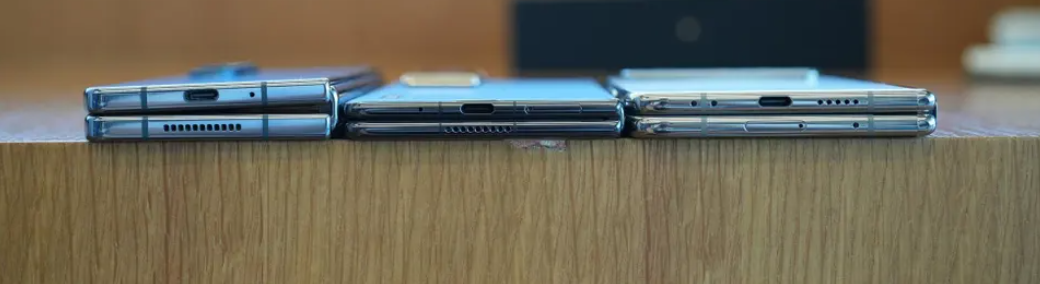 从左到右依次为三星Z Fold4、荣耀Magic V2和华为Mate X3 来源:Youtube