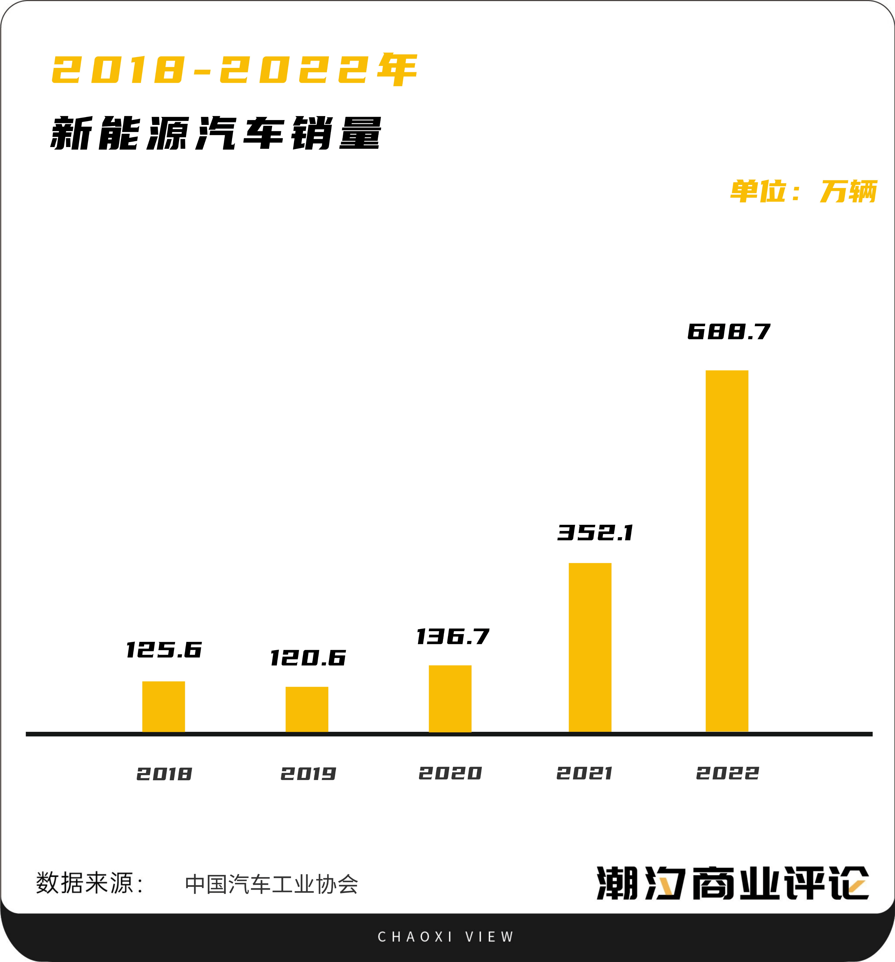 事实上,消费者对新能源汽车从谨慎观望到主动拥抱,仅仅经历了2年时间。从2018年到2020年,彼时,国内新能源汽车的年销量为一百多万辆。直到2021年,新能源汽车的需求量正式爆发,2021年新能源汽车销量达352.1万辆,一年增长了近200万辆,到了2022年更是翻倍。