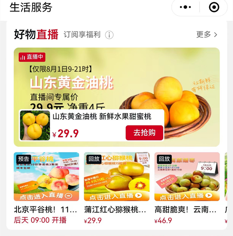 近日,顺丰在小程序上架了“好物直播间”板块,低调试水直播带货业务。直播内容以水果品类为主,还涉及以丰巢为终端的干洗生活服务。直播间内所售产品,均通过顺丰速运邮寄。
