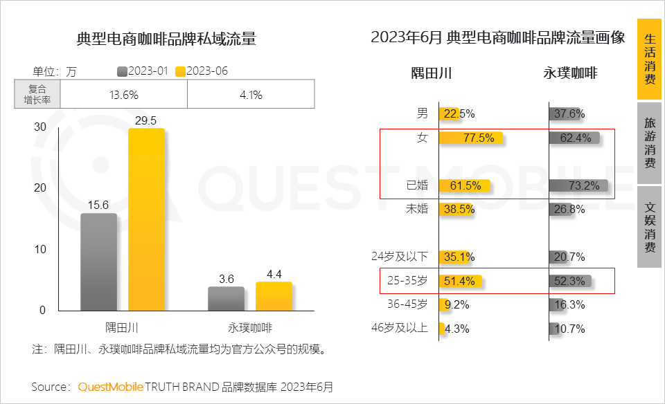 2.7 典型电商咖啡品牌私域流量实现复合增长,该品牌的主要受众群体是25-35岁的已婚女性