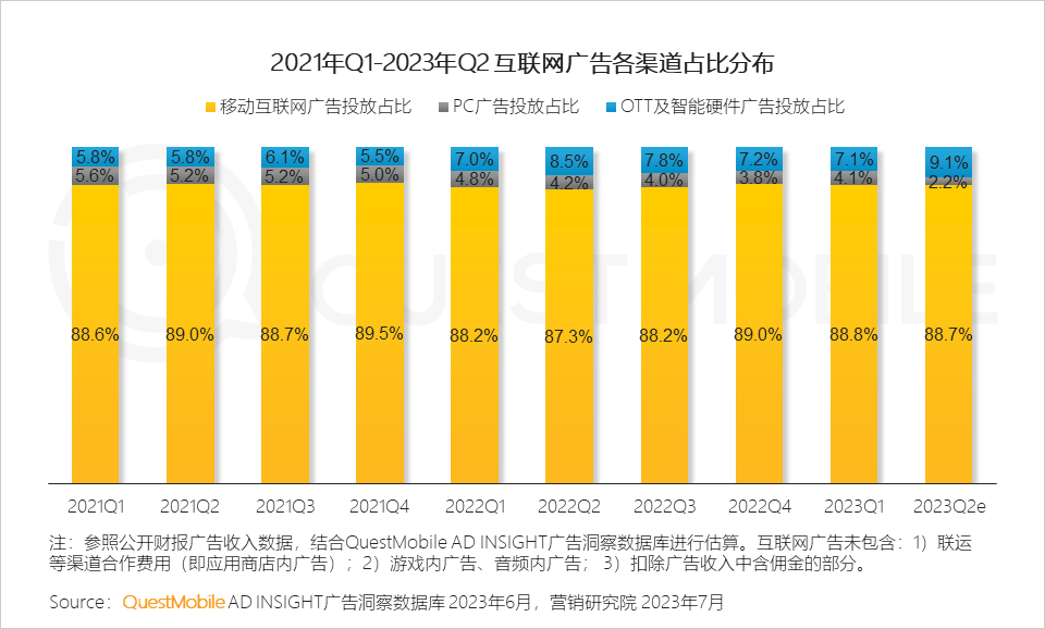 2.3 移动互联网广告投放稳定,OTT及智能硬件广告投放快速增长