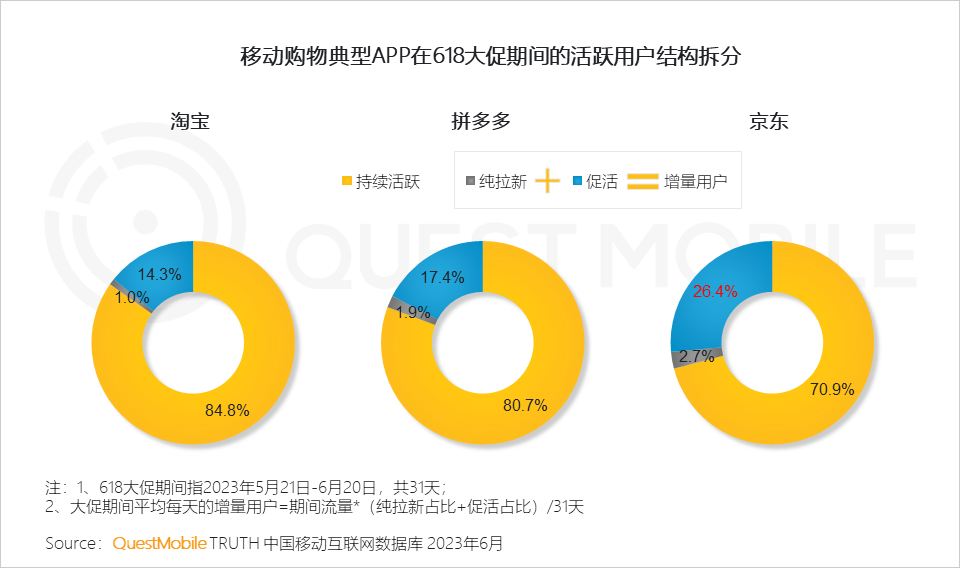 大促期间,淘宝、拼多多、京东平均每天分别获得450万、411万和495万的增量用户。
