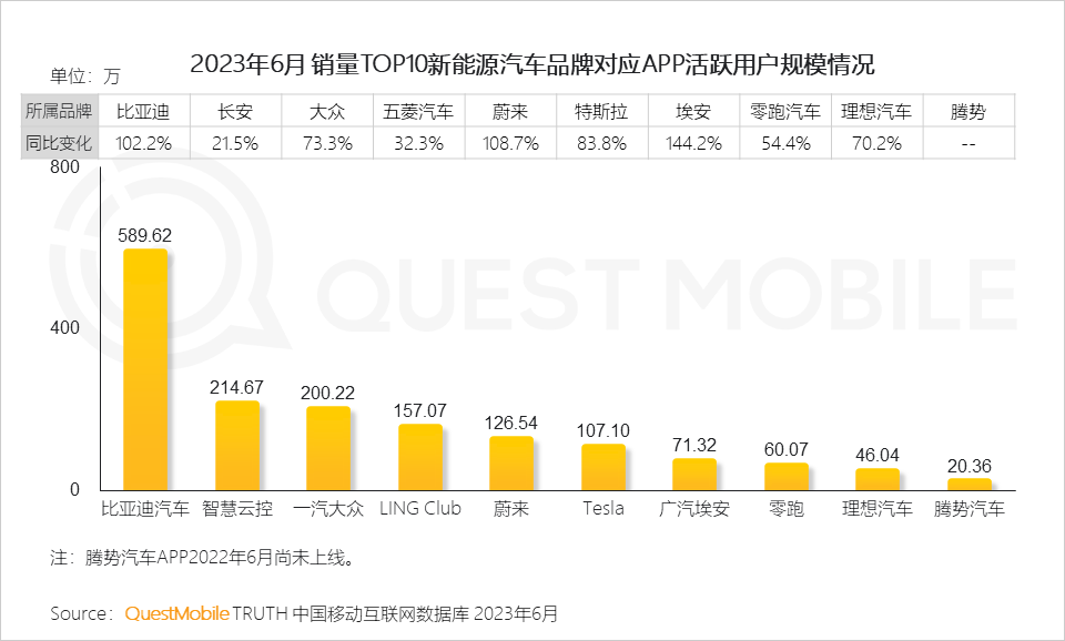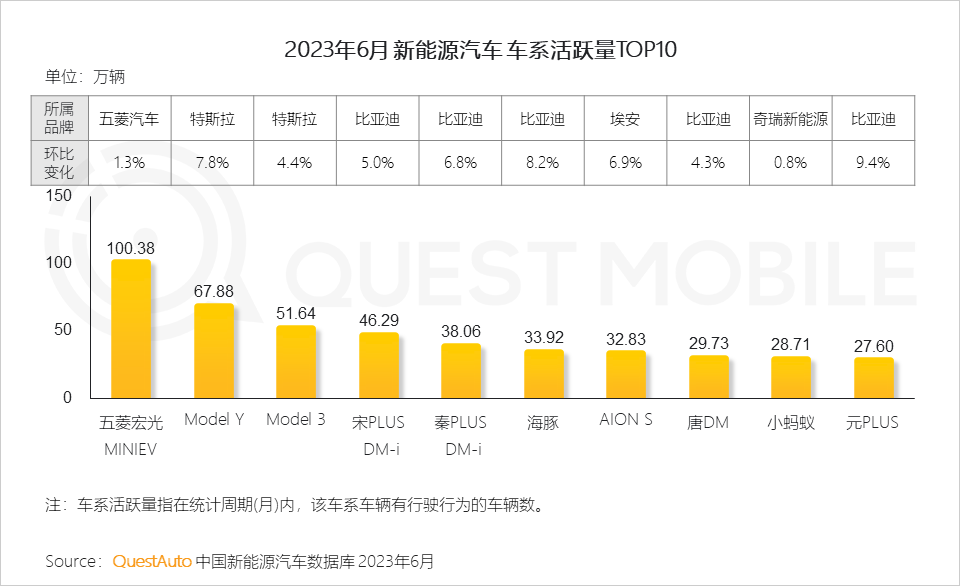 QuestAuto数据显示,比亚迪6月汽车活跃量已达366万辆,上汽通用五菱、特斯拉中国活跃量均超百万,理想汽车、广汽埃安新能源等增速明显。