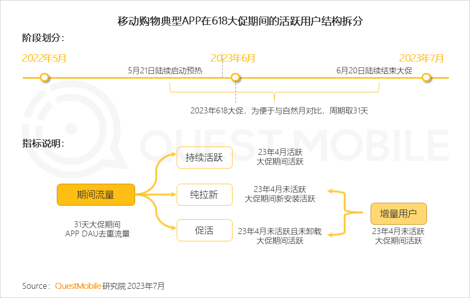 Ⅱ. 618大促战线常态化“拉长”,从流量结构看,大促能够有效的为电商平台带来拉新促活效果;作为618主场,京东实现了对更多沉默用户的再次唤醒