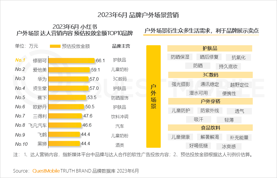 3.4 品牌营销走向户外,不同类型的品牌均借助户外场景,植入品牌营销点,巧妙展示如何借助产品满足消费者各类户外需求