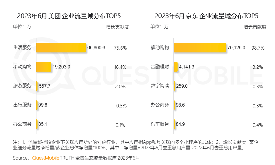 随着复苏态势稳定,这些“头部玩家”发力方向正在发生微妙变化,腾讯在手机游戏领域用户增长了10.8%,阿里巴巴在生活服务领域用户增长了128.9%,百度在出行服务、办公商务领域分别增长了18.0%、15.4%,抖音集团在移动音乐和数字阅读领域分别增长了15倍(惊悚?)、45.2%;同时,垂类“头部玩家”的新增长领域也有新发展,例如美团的移动购物领域用户增长贡献度已经达到了16.4%……