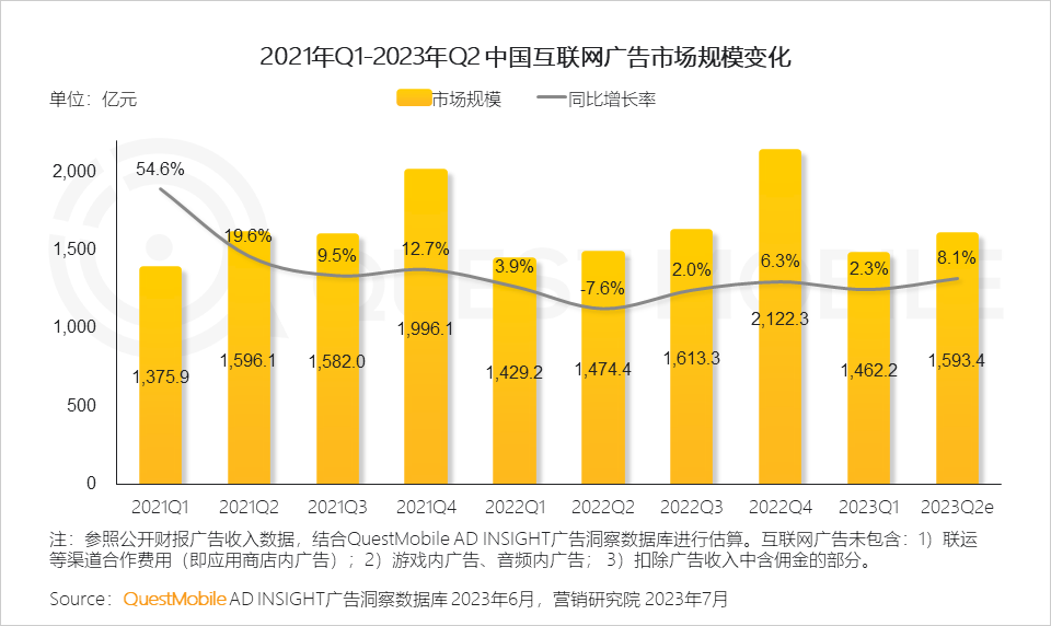 2.1 互联网广告市场2023Q2恢复增长,下半年有望被经济发展继续带动增长