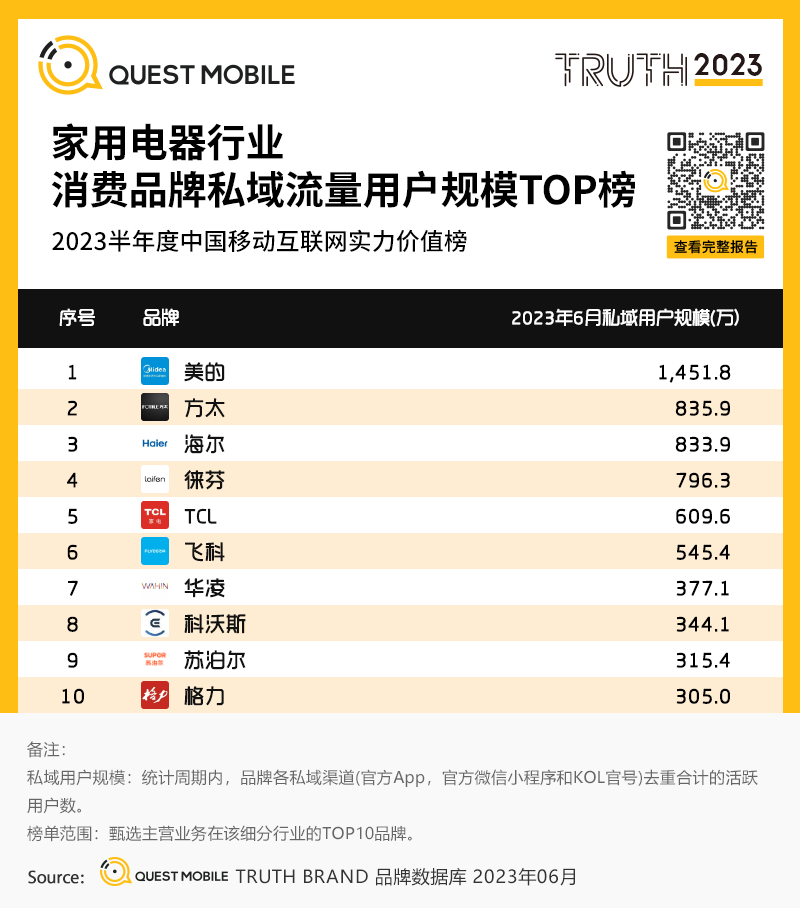 10、家用电器行业-消费品牌私域流量用户规模TOP榜
