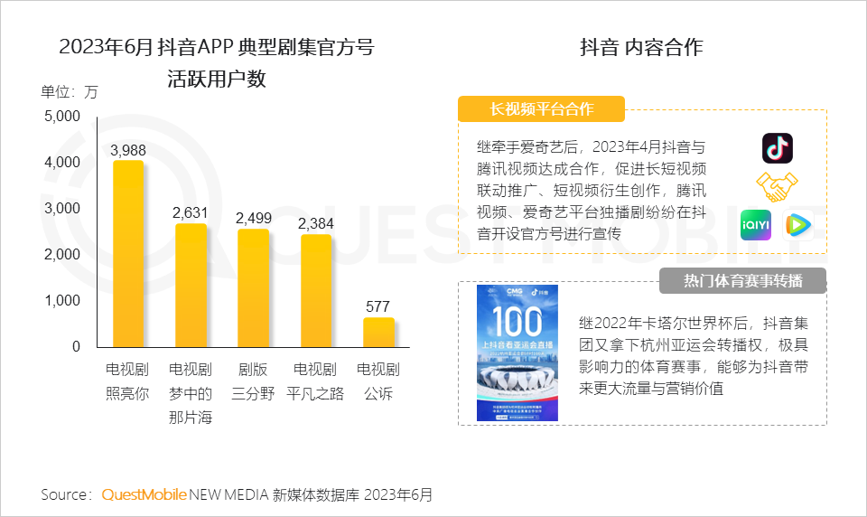 Ⅲ. 抖音积极合作长视频平台,获取独播剧版权,使得优质内容池不断扩容,同时抖音通过拿下大型体育赛事转播权,为平台引流