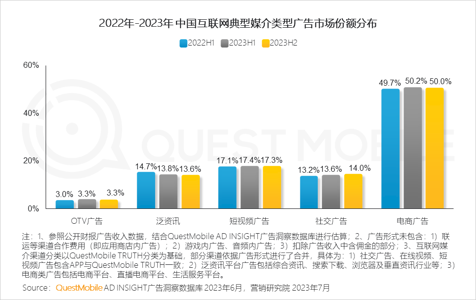 QuestMobile数据显示:传统行业广告主中,约有60%广告主在电商平台内投放广告。