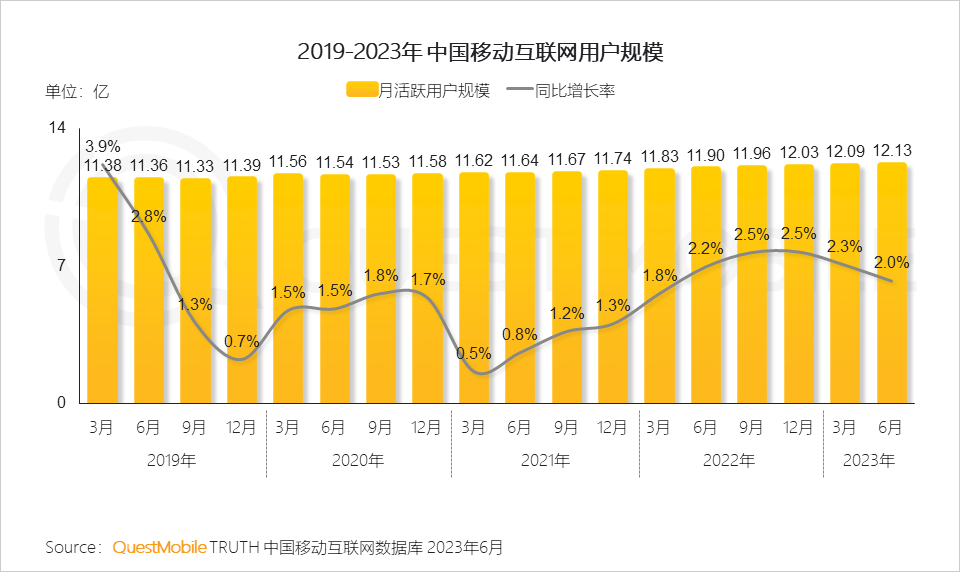 1.2 移动互联网用户规模依然保持相对稳定,过去一年均处于同比增长2-2.5%区间