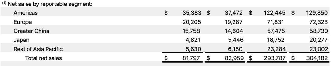 相比之下,苹果第一大市场美洲区营收同比下降5.6%,降至约354亿美元;日本营收同比下降11.5%,降至48亿美元。