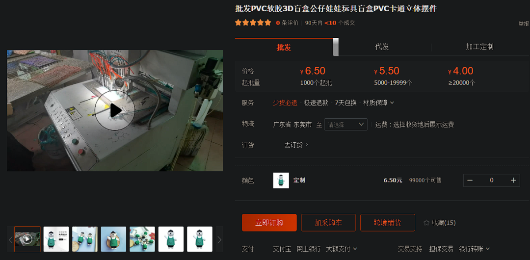 我按图索骥在1688联系到了一家据称是源头厂商的蛋仔盲盒商家,在消费了两板蛋仔盲盒之后说明来意,客服表示老板是要自己定做吗?有图就行。