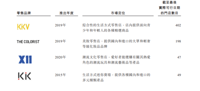“由于生活方式消费品潮流零售市场的强劲市场需求我们的可持续扩张计划及实现持续增长和盈利能力方面的努力,预期于2023年将开设250家至300家新门店”。KK集团在招股书表示。