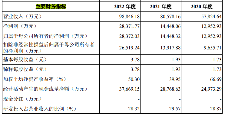 虽然有明星投资机构加持,但从招股书公布的最早的数据来看,直到2020年,合合信息才刚刚扭亏为盈。2018-2022年,合合信息营收分别为1.96亿元、3.4亿元、5.78亿元、8.06亿元和9.88亿元,归属于上市公司股东的净利润分别为-7871.43万元、-1.96亿元、1.3亿元、1.4亿元和2.84亿元。