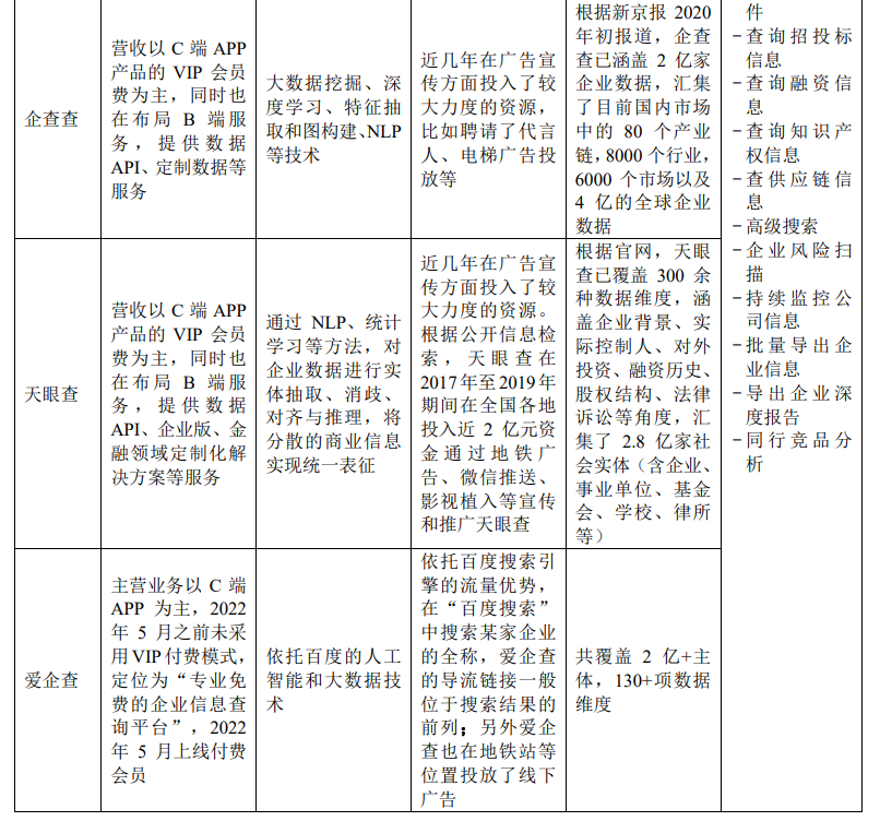 在商业信息查询C端市场,天眼查、企查查、爱企查和启信宝的定位、业务模式和技术路线均相似。